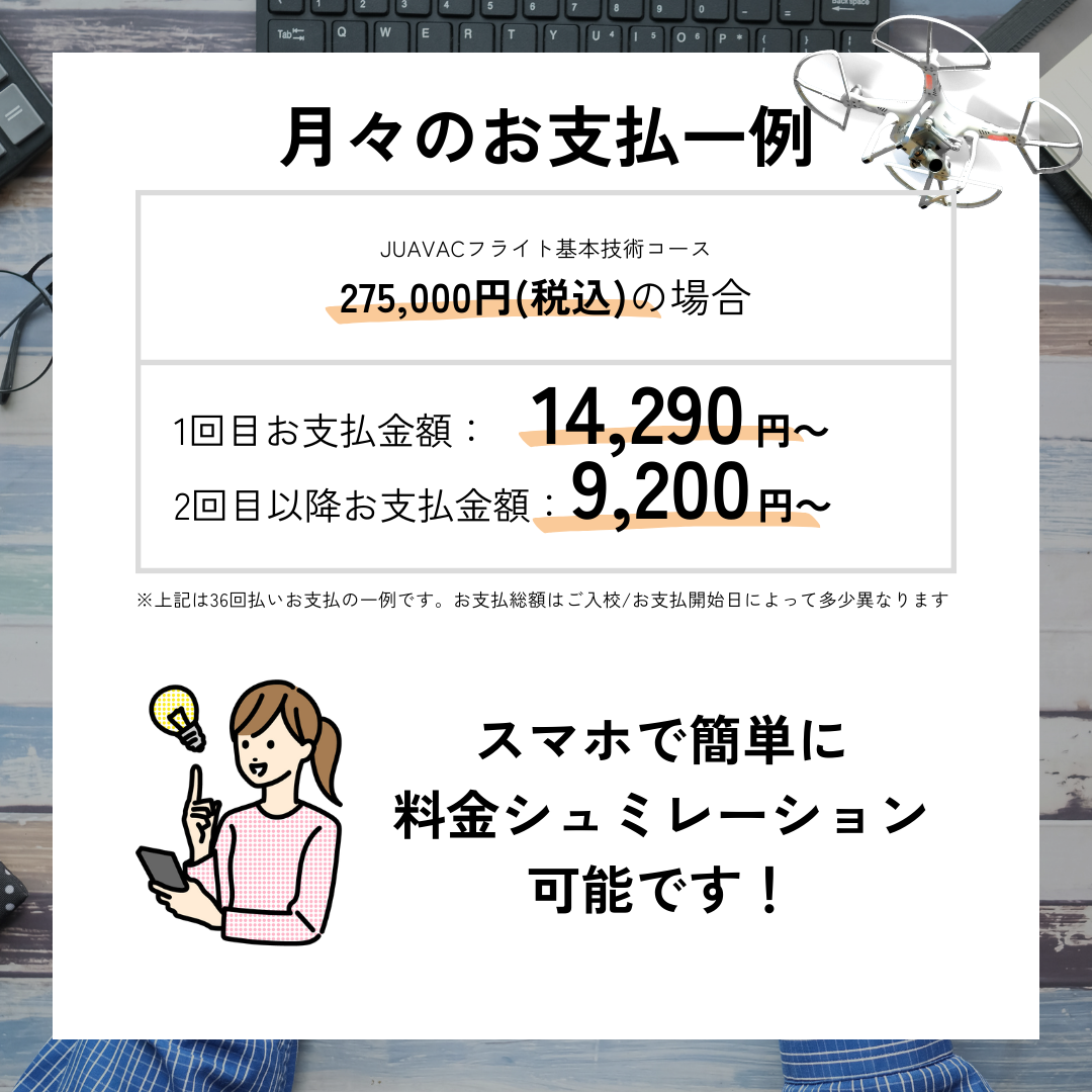JUAVACドローンエキスパートアカデミー京都校の受講料及び受講料+機体購入料金のお支払方法に